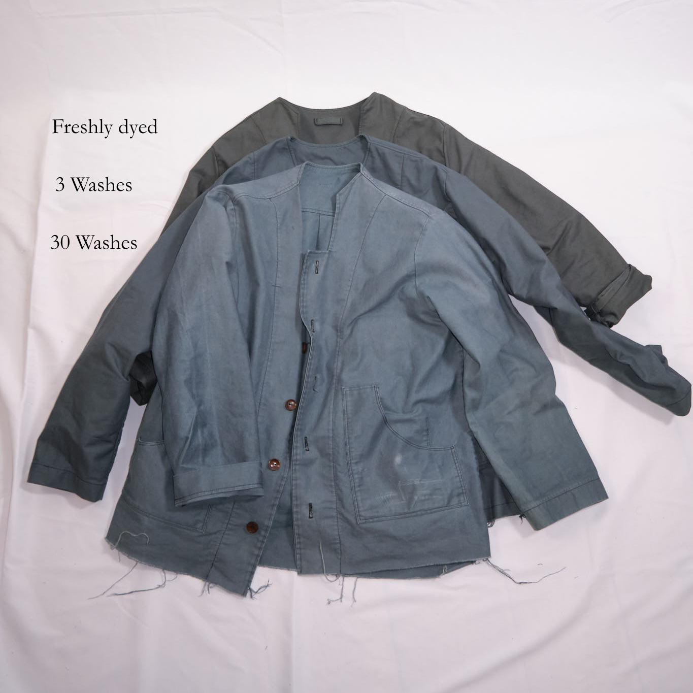 I dye every single piece by hand after it is sewn together. This process is called garment dyeing and leads to a unique result. The dye washes have different effects on the fabric, depending on the colour.