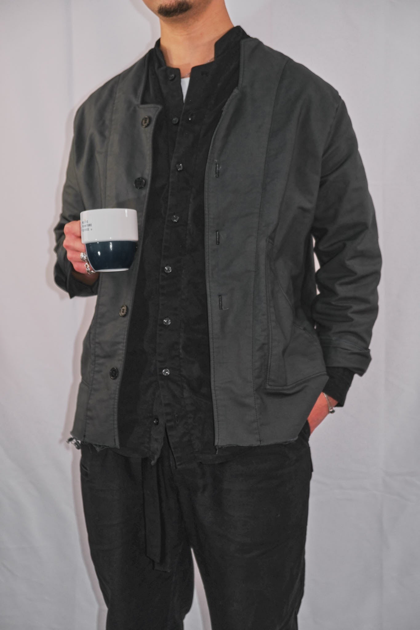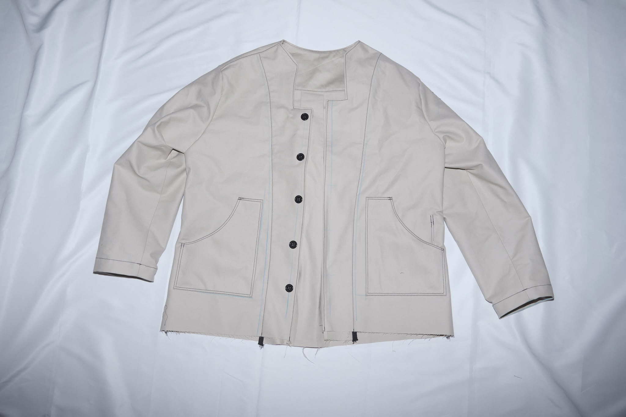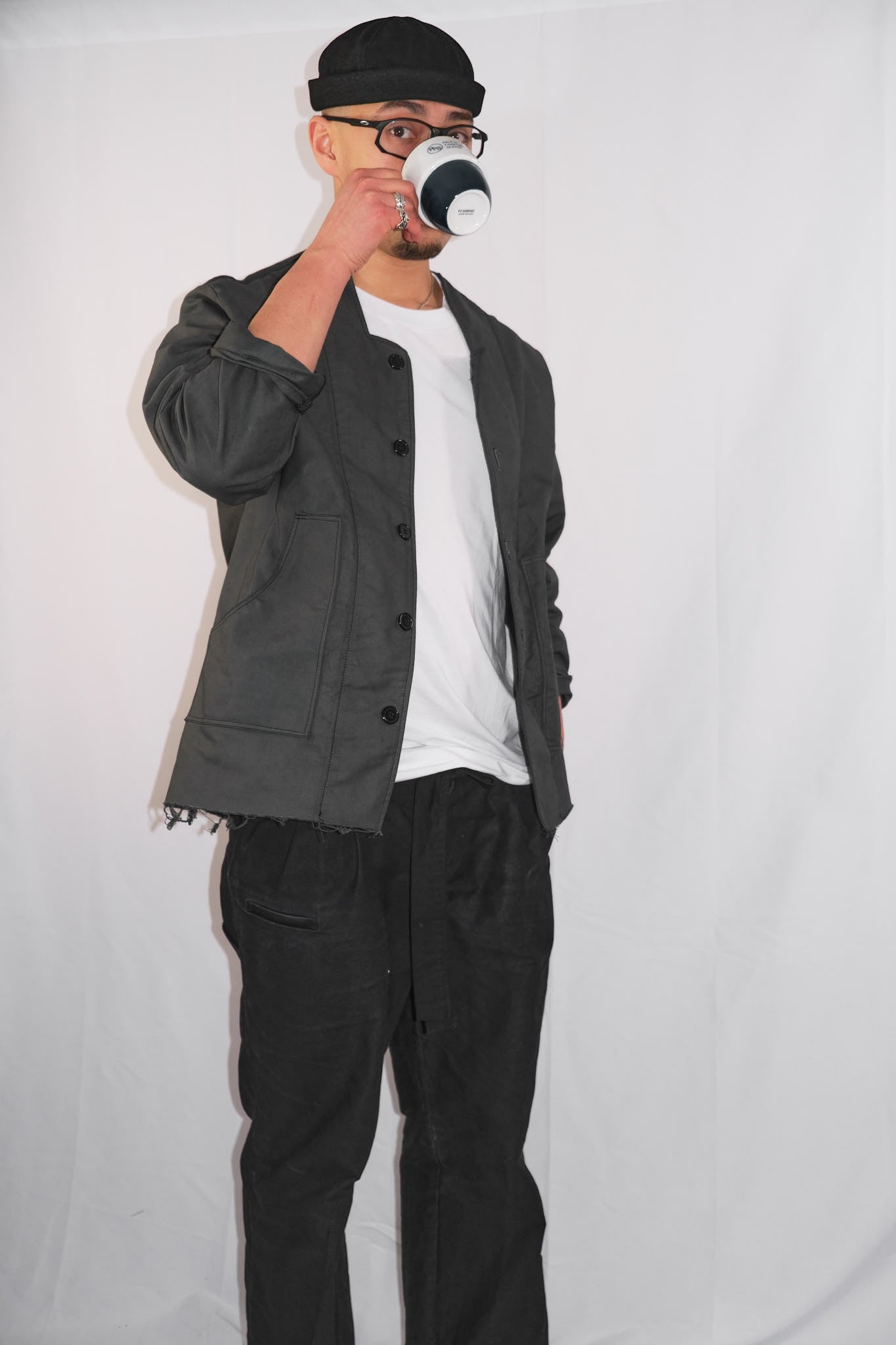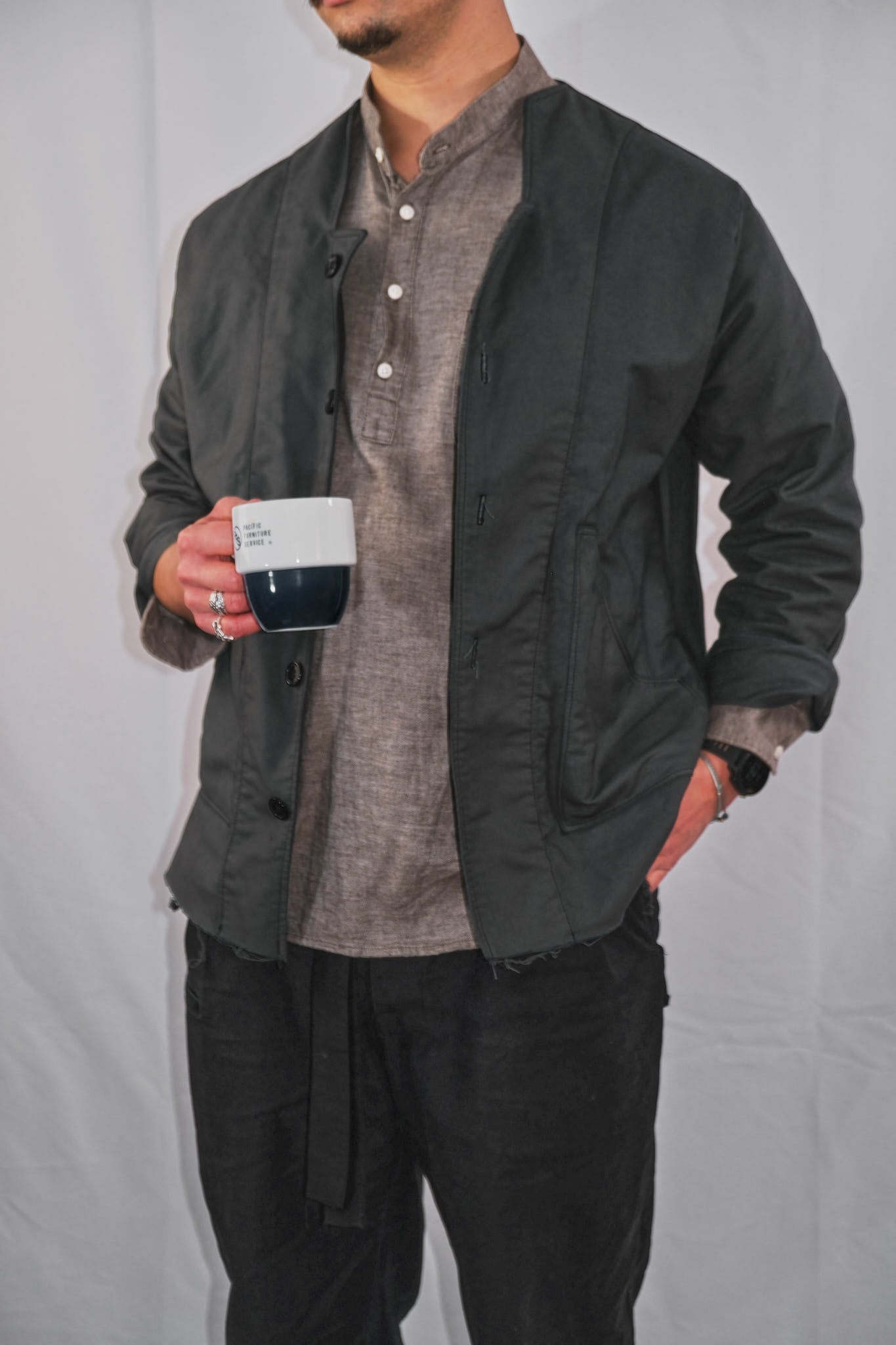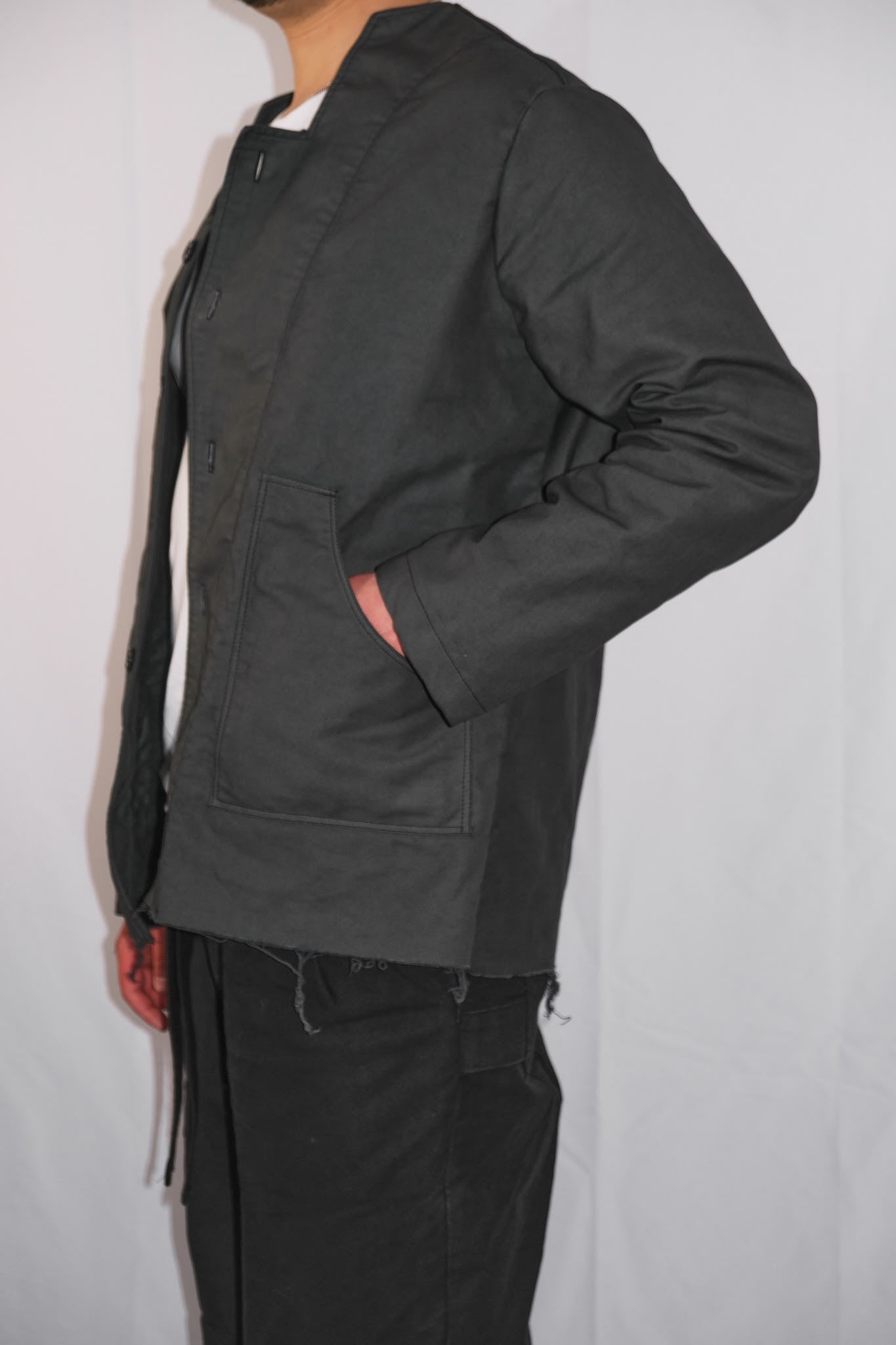 Arthur's Coat combines an utilitarian canvas construction with a refined, collarless silhouette. Designed with meticulous attention for detail and solution centered thinking. Cut, Sewn and Dyed by hand by one craftsman in my studio in Friedrichshain, Berlin.